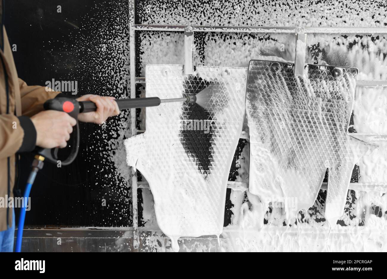 Worker Cleaning Auto Mats with High Pressure Foam Jet at Car Wash Stock Can I Power Wash My Car Mats Let the car floor mat dry before you. Because of making from fabric so the dirt usually sticks there, and only a vacuum can remove them; If they are made solely of carpet material, they can be machine washed, but if they contain any rubber or plastic, clean them by hand. Free quotes over phonesafe & effective process To clean. Can I Power Wash My Car Mats.
