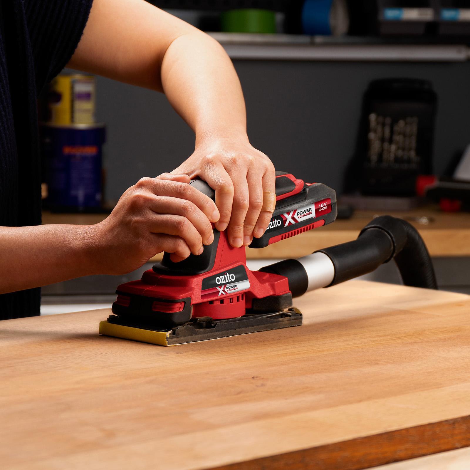 Ozito PXMSS 18v Cordless Detail Sander Delta Sanders Ozito Sander Cordless The sure grip handle increases user comfort. This pxc quarter sheet sander is a powerhouse in precision sanding for woodworking at your home. With the added convenience of being cordless and lightweight, this tool is ideal for intricate work or for use in remote areas. This cordless random orbital sander is designed to rapidly remove material from timber or painted. Ozito Sander Cordless.