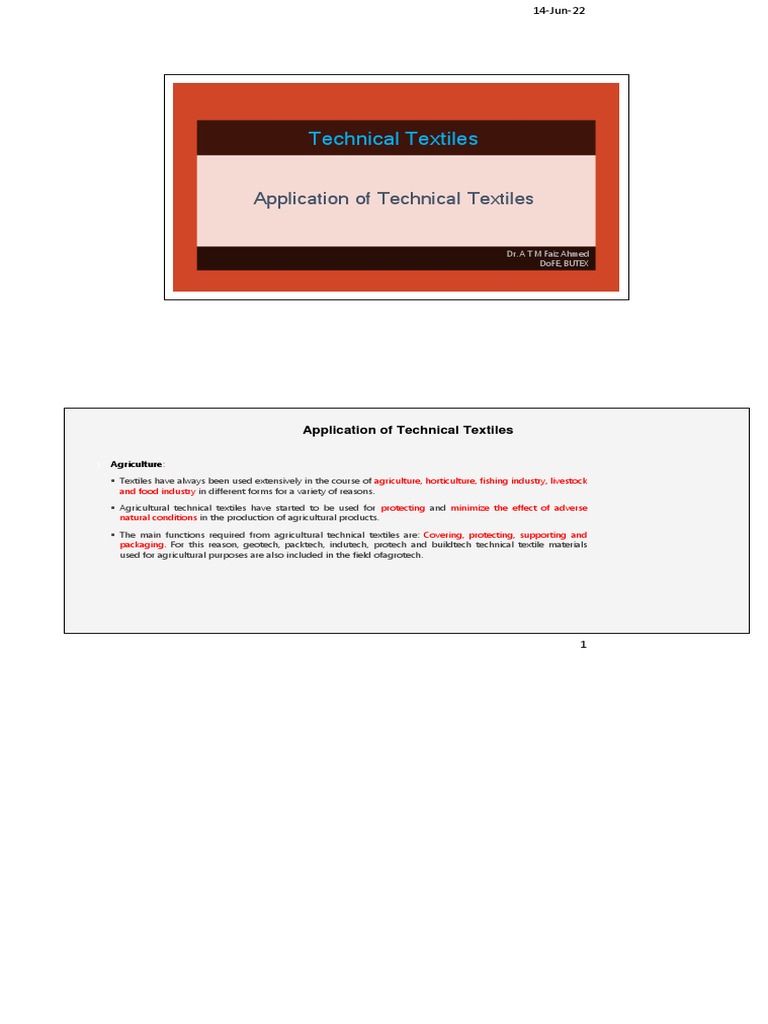 Application of Technical Textiles PDF Textiles Nonwoven Fabric