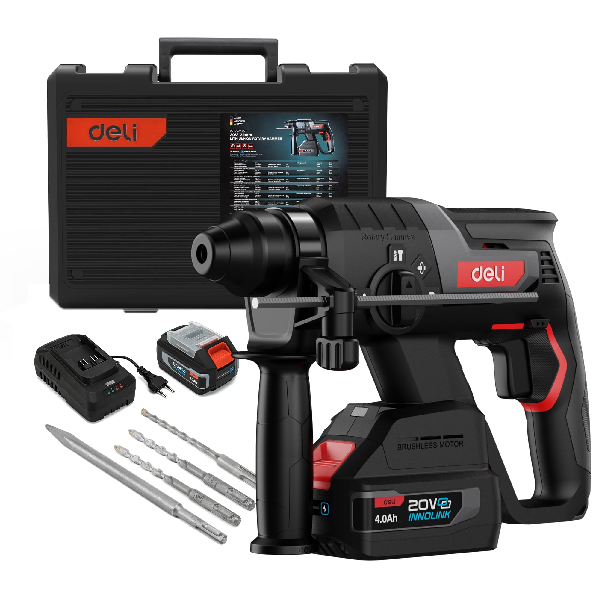 Deli 20V Max LithiumIon Rotary Hammer,11/4 Inch SDSPlus Heavy Duty Brushless Cordless