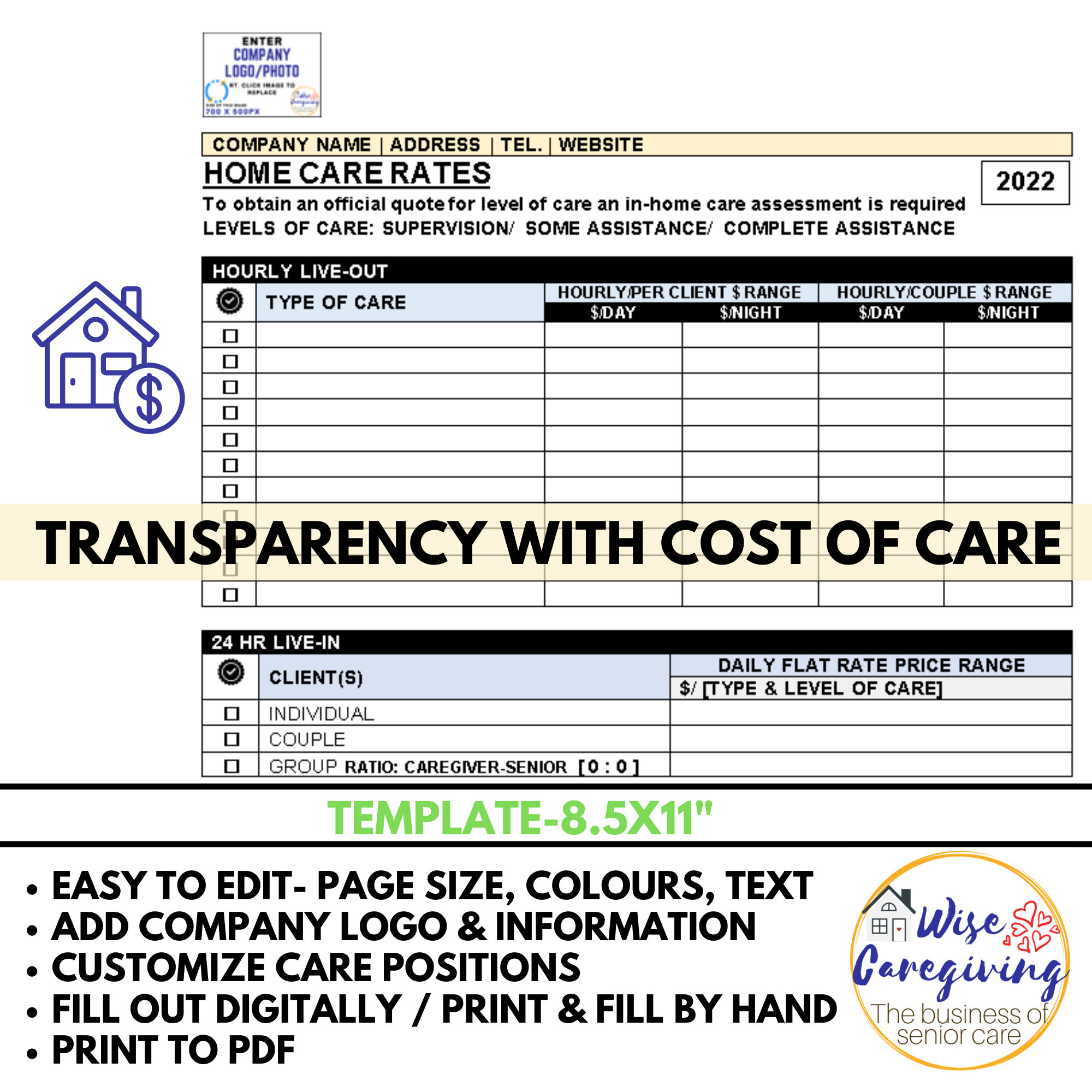 Home Care Rates Template Agency Service Price List Etsy