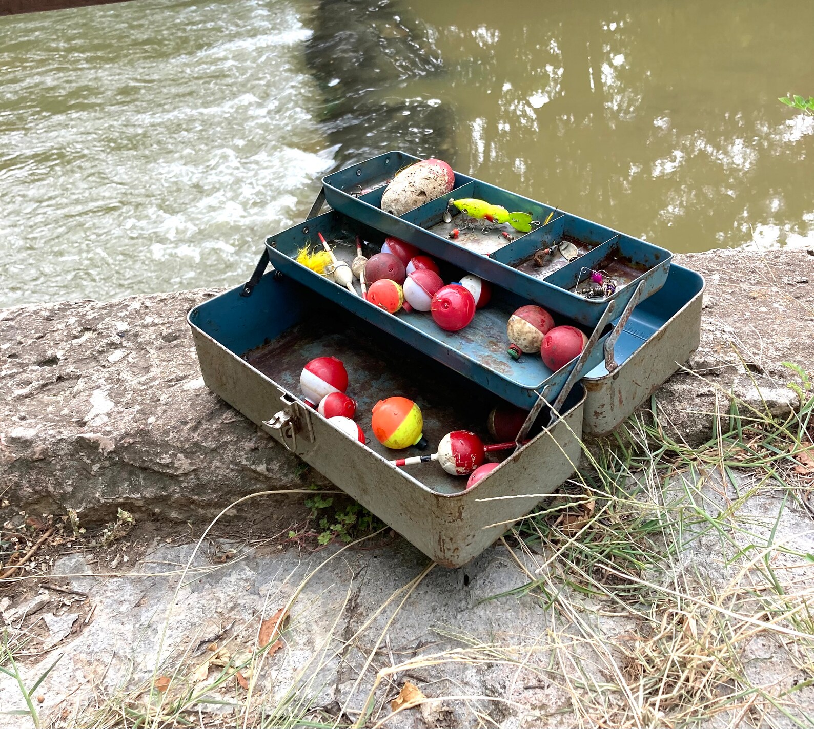 Vintage Metal Fishing Tackle Box With Lures and Bobbers Etsy