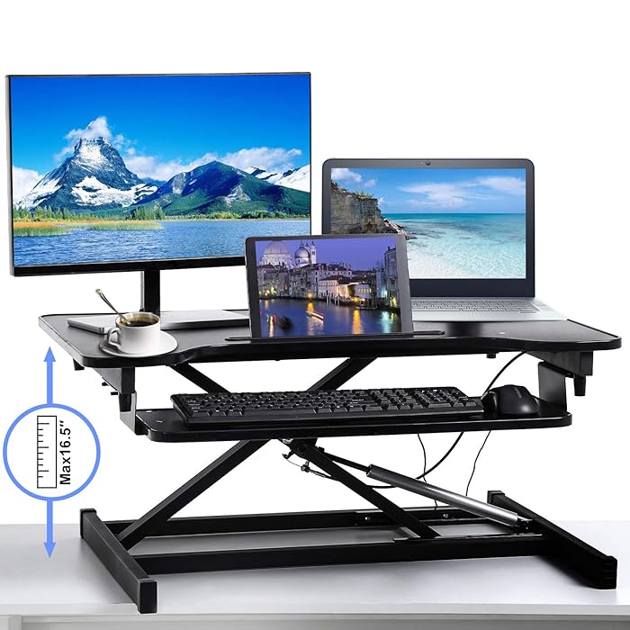 Buy WOKA Standing Desk Converter, 32" Height Adjustable Stand Up Desk Laptop Desk Riser 28 Wide (Black) Versadesk powerpro 36 inch electric standing desk converter, height adjustable sit to stand up desk riser, laptop and dual monitor desktop. Laptop desk riser provides versatility and convenient portability to use at home or in the office. The solidly built desktop supports up to 28.6 lbs, easily holding multiple monitors or laptop and monitor combinations. Joy worker standing desk converter,. Laptop Desk Riser 28 Wide (Black).
