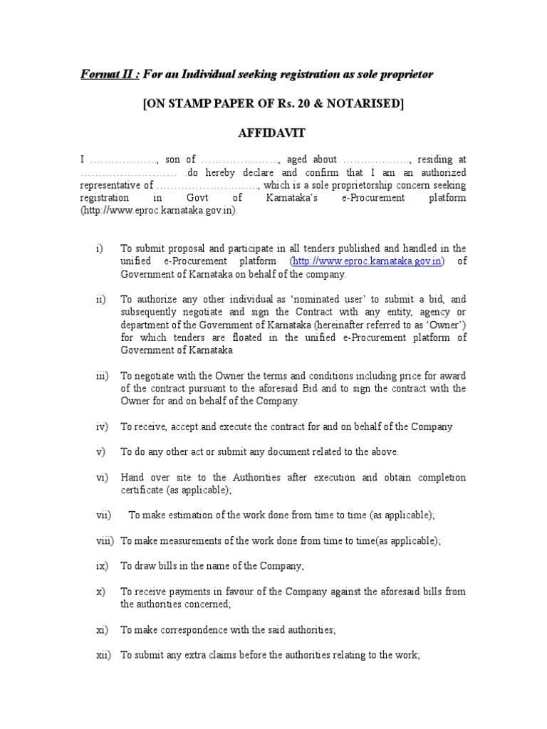 Affidavit Proprietorship Sole Proprietorship Guarantee