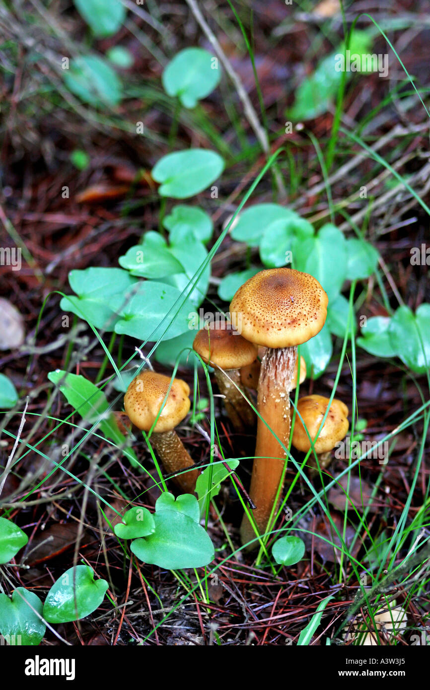 Wild mushrooms fungi or toadstools growing in a forest in southern