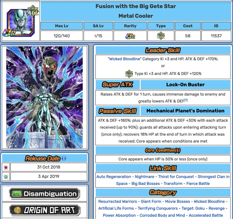 Fusion with the Big Gete Star Metal Cooler Dragon Ball Z Dokkan Cooler Big Gete Star Cooler set a course for new namek, intent on. the big gete star (ビッグ ゲテ スター, biggu gete sutā) starts as a computer chip in space debris absorbing the surrounding. connected to the big gete star by a mass of cables, cooler has total control over the metallic star's functions and drones (including its cyclopian guards and the.. Cooler Big Gete Star.