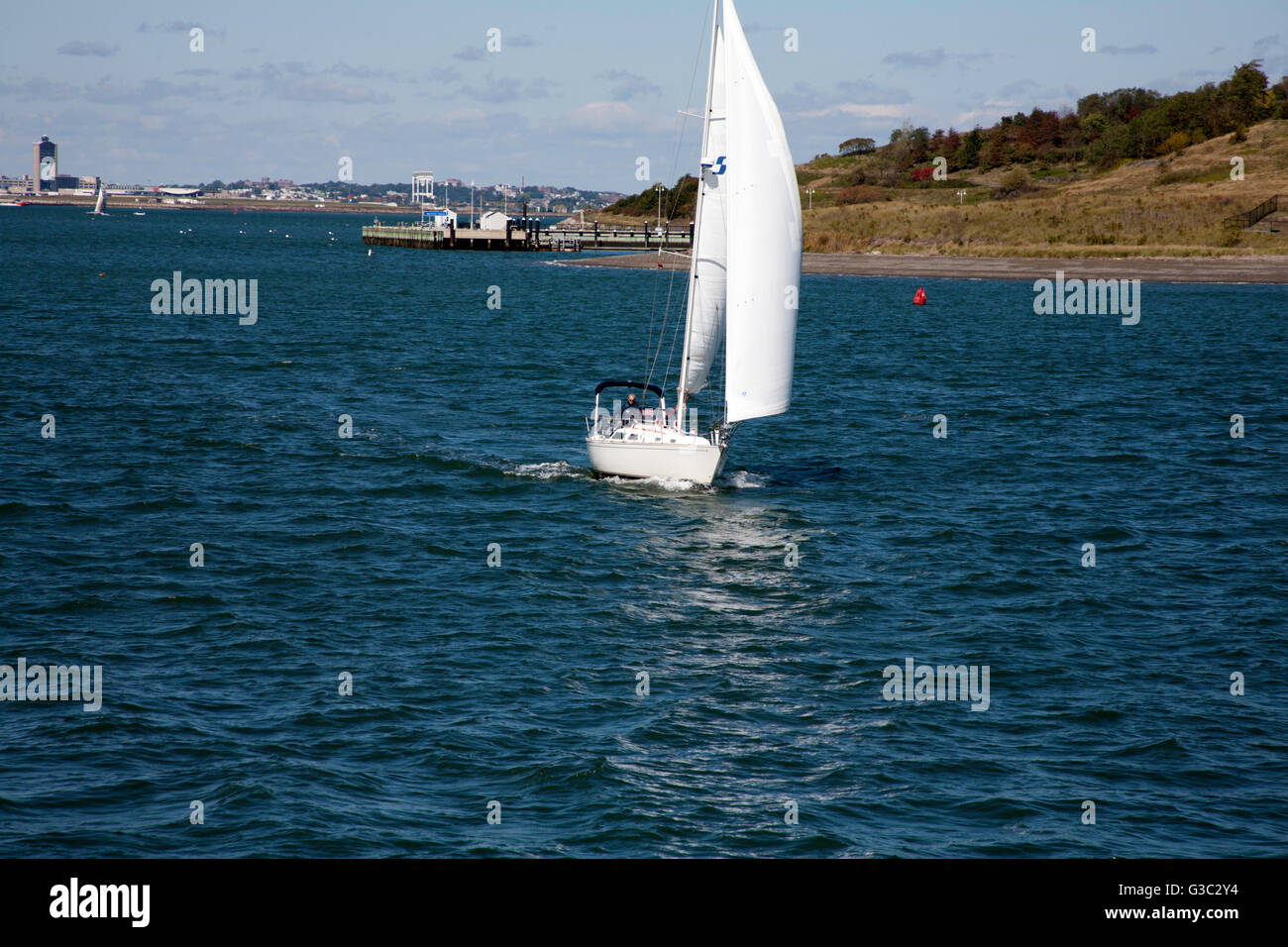 Yacht sailing around Boston harbor and islands an area of Massachusetts