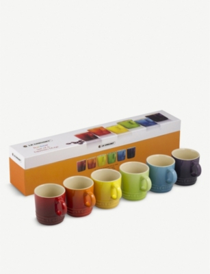 Le Creuset Stoneware Rainbow Espresso Mugs (Set of 6) Multi Free UK