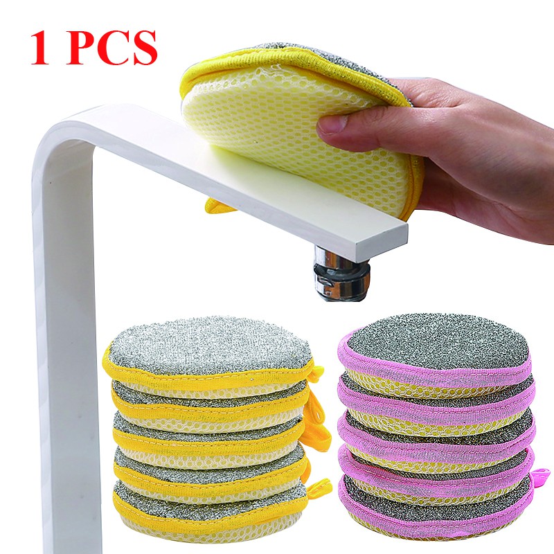 Double Side Round Dishwashing Sponge, MultiPurpose Kitchen Scrubber