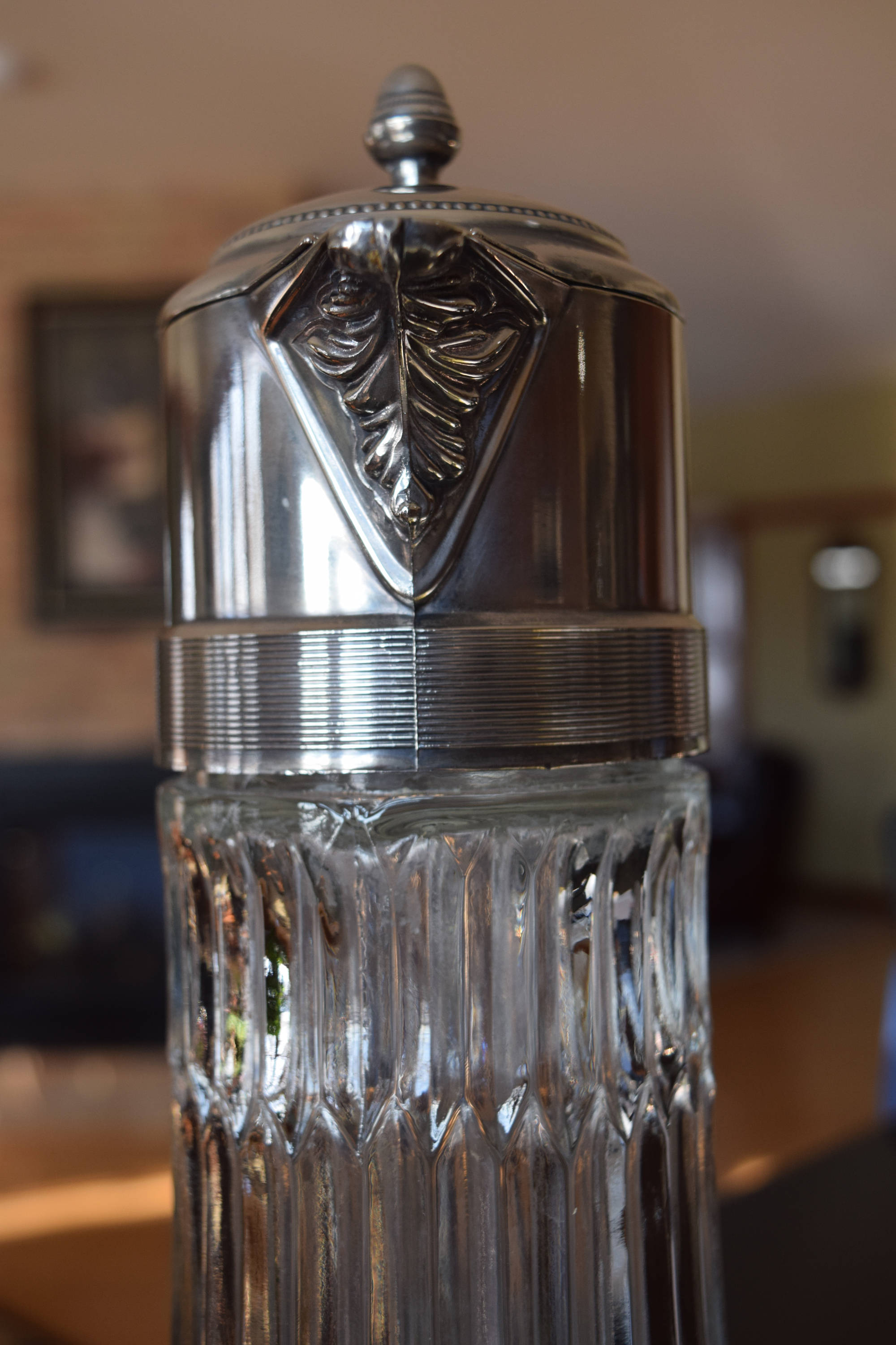 Vintage Wine Decanter Pitcher with Silver Top, circa 1940's, Home Bar Decor, Bar Cart Decanter