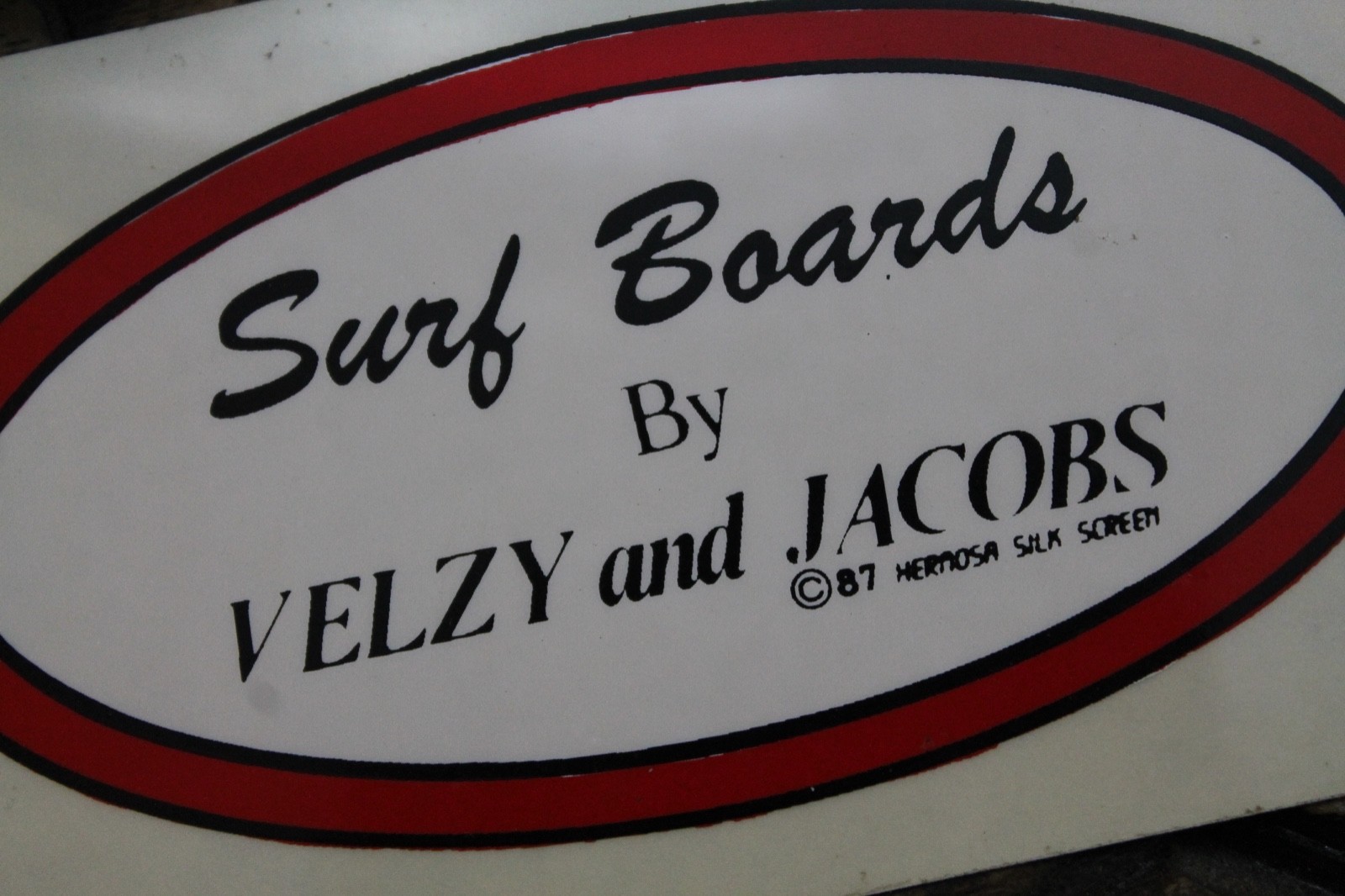 VELZY and JACOBS Surfboards 1987 Rare Longboard Logo V10 Vintage Surfing STICKER eBay