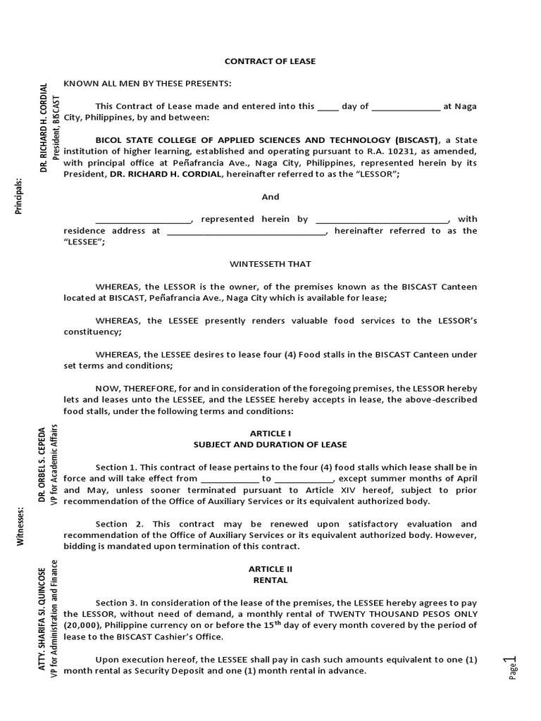 CONTRACT OF LEASE Canteen PDF Lease Common Law