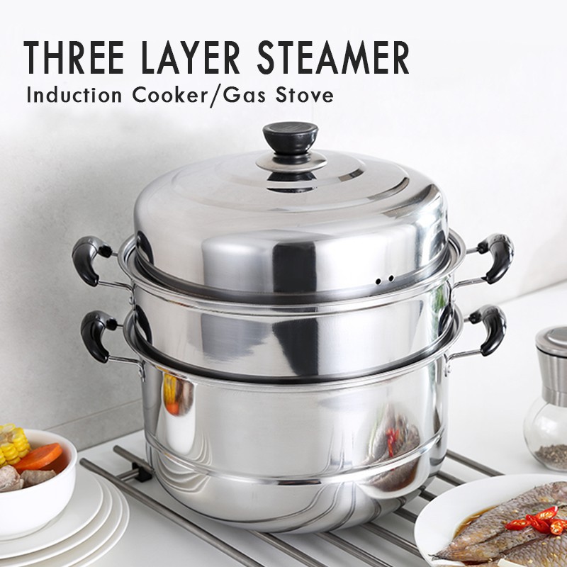 HEKKAW Steamer 3 Layer Siomai Steamer Stainless Steel Cooking Pot