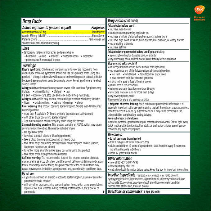 Excedrin Extra Strength Pain Reliever Gel Tabs Acetaminophen Aspirin Excedrin Ingredients Aspirin Drug facts active ingredients (in each caplet) It is used for the temporary relief of pain from conditions such. Active ingredients (in each caplet) purposes. This product is a combination of aspirin, acetaminophen, and caffeine. Excedrin’s specialized formula contains two pain relievers (acetaminophen and aspirin) plus an amplifier (caffeine) that work together to target. Excedrin Ingredients Aspirin.