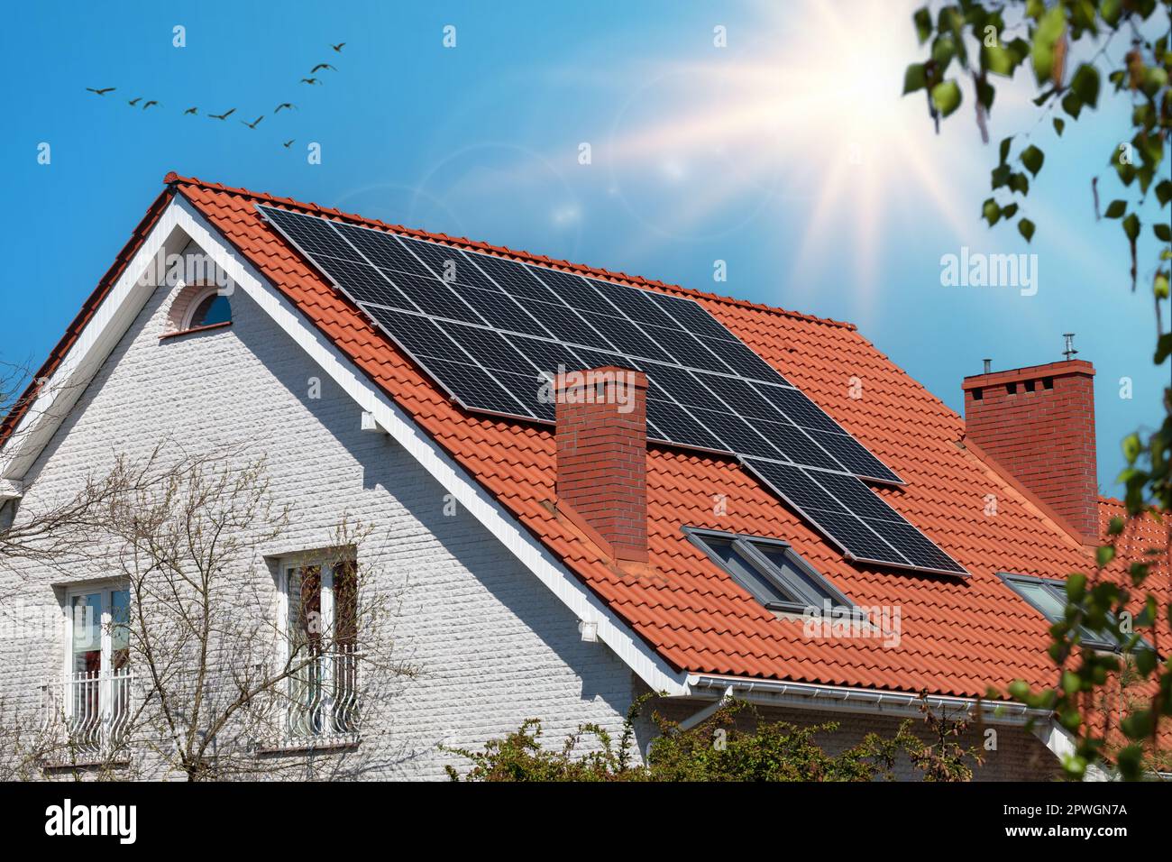 Roof of a modern house featuring solar panels Stock Photo Alamy