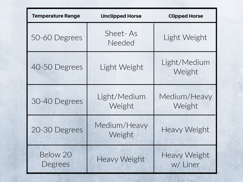 Getting Clarity With Our Horse Blanket Temperature Chart The Horses Guide What Temperature Blanket Horse What horse blankets to use according to temperature just for good measure, i thought i'd put together a little temperature scale. How to blanket a horse temperature guide; But there are exceptions to that rule. Refer to the chart below as a general guide on when to blanket a horse based on a combination of temperature, condition of the horse,. What Temperature Blanket Horse.