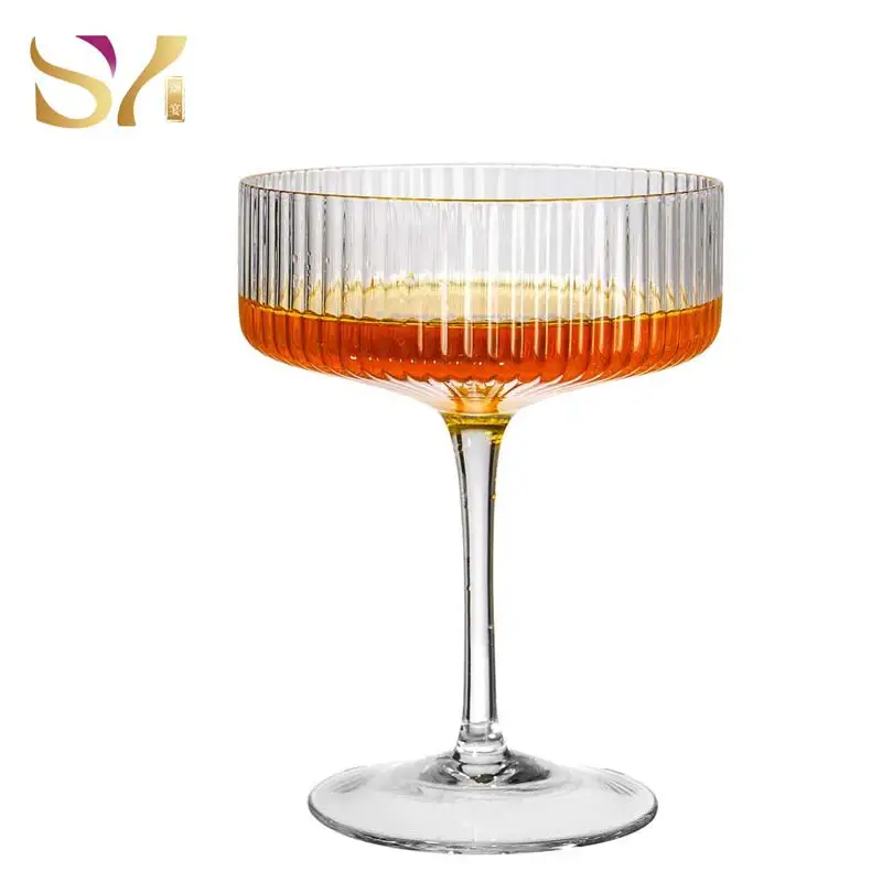 Wholesale Classic Vertical Lines Colorful Cocktail Coupe Glasses Unique
