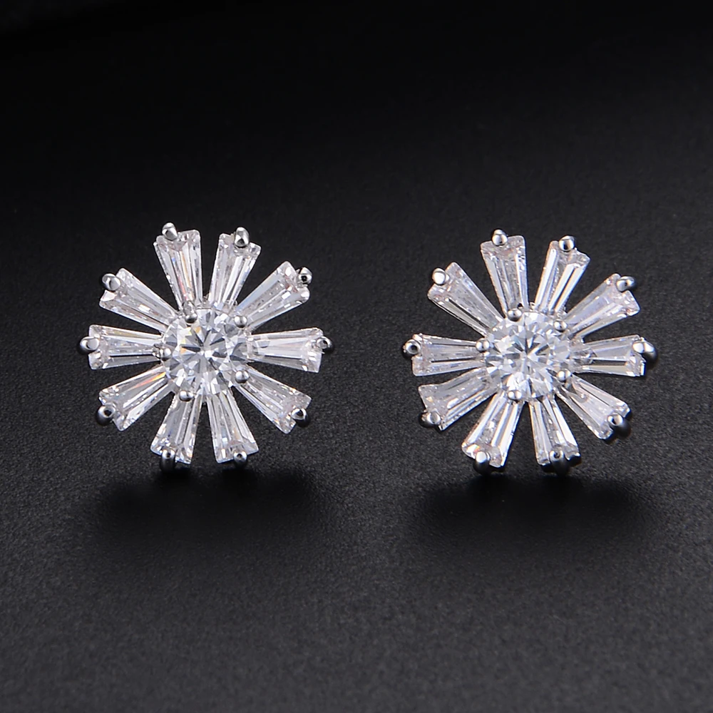 12MM Cute Plant Daisy Full Cubic Zirconia Stud Earrings For Bridal