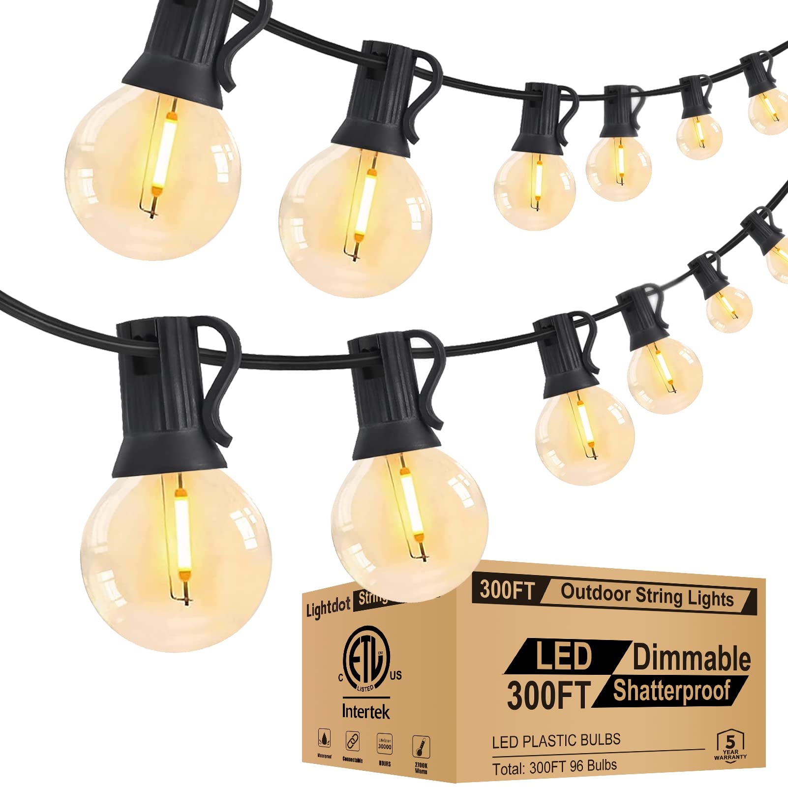 Lightdot 300FT (3X 100FT) Outdoor Bistro Light, Dimmable LED Outdoor