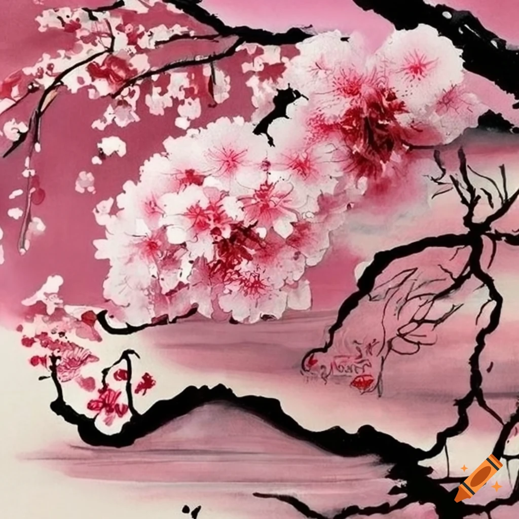 YKCG Creative Classical Japanese Ink Painting Sunset Sakura Branches Ink Painting Japanese The ink, known as “sumi”, is created by grinding a solid ink stick against an ink stone with water. Connect with japanese zen philosophy and let your energy flow through expressive ink brush strokes. This process of preparing the ink is itself a form of meditation, an opportunity for the artist to focus and connect with the task at hand.. Ink Painting Japanese.