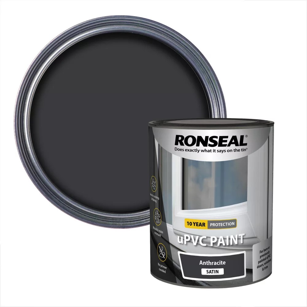 Ronseal 750ml Anthracite Satin Self Priming uPVC Paint Screwfix