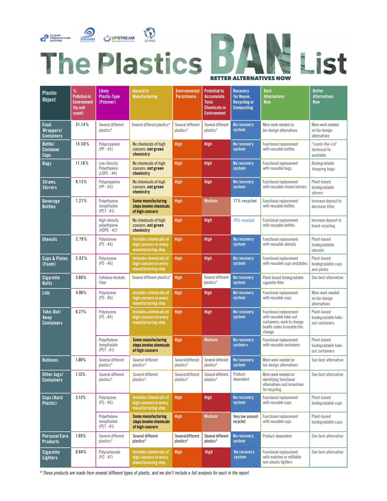Plastics BAN List Launched — Plastic Pollution Coalition