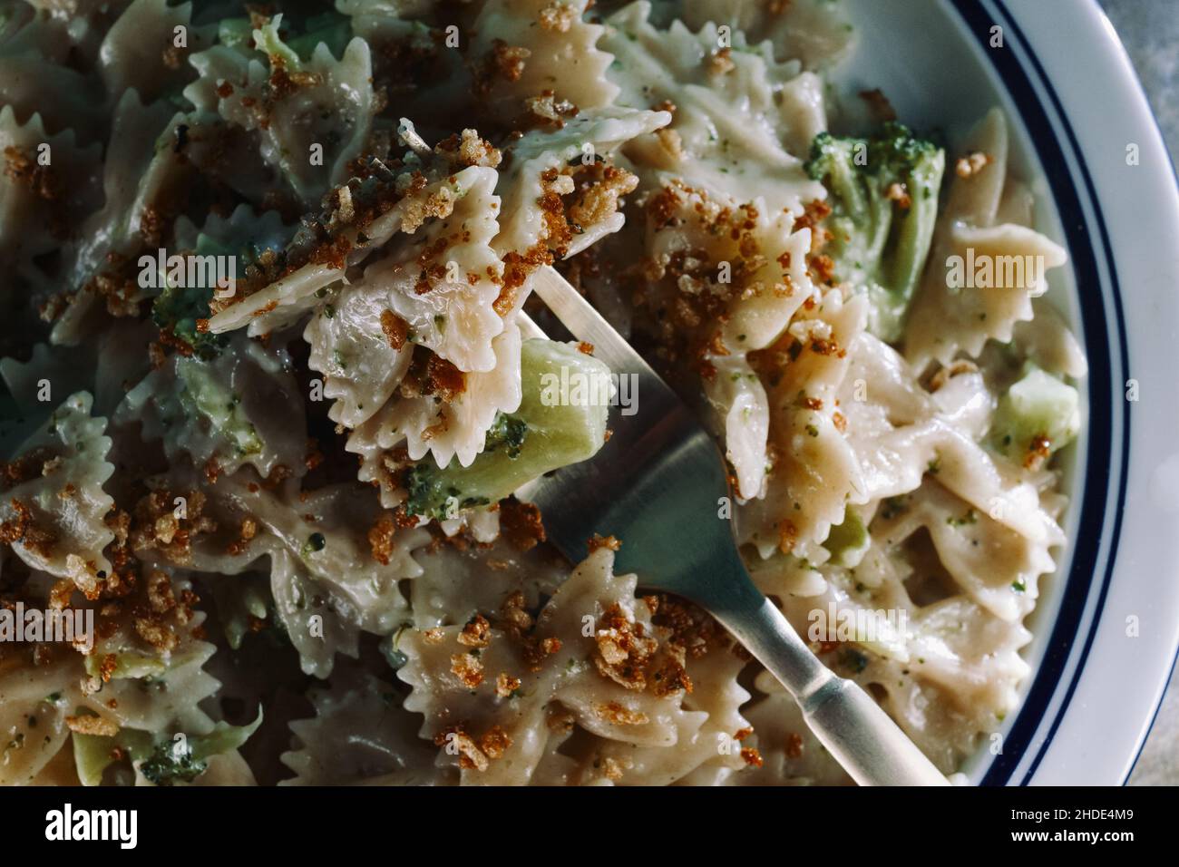 Creamy Italian alfredo bowtie pasta with broccoli Stock Photo Alamy