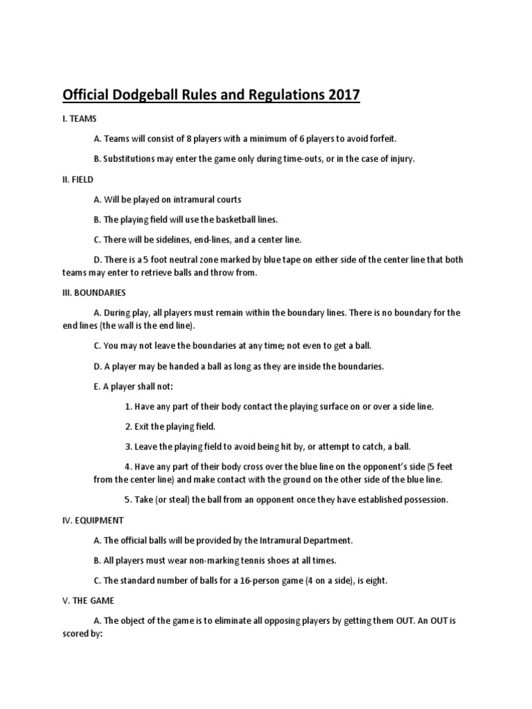 Official Dodgeball Rules and Regulations PDF Sports Sports Rules