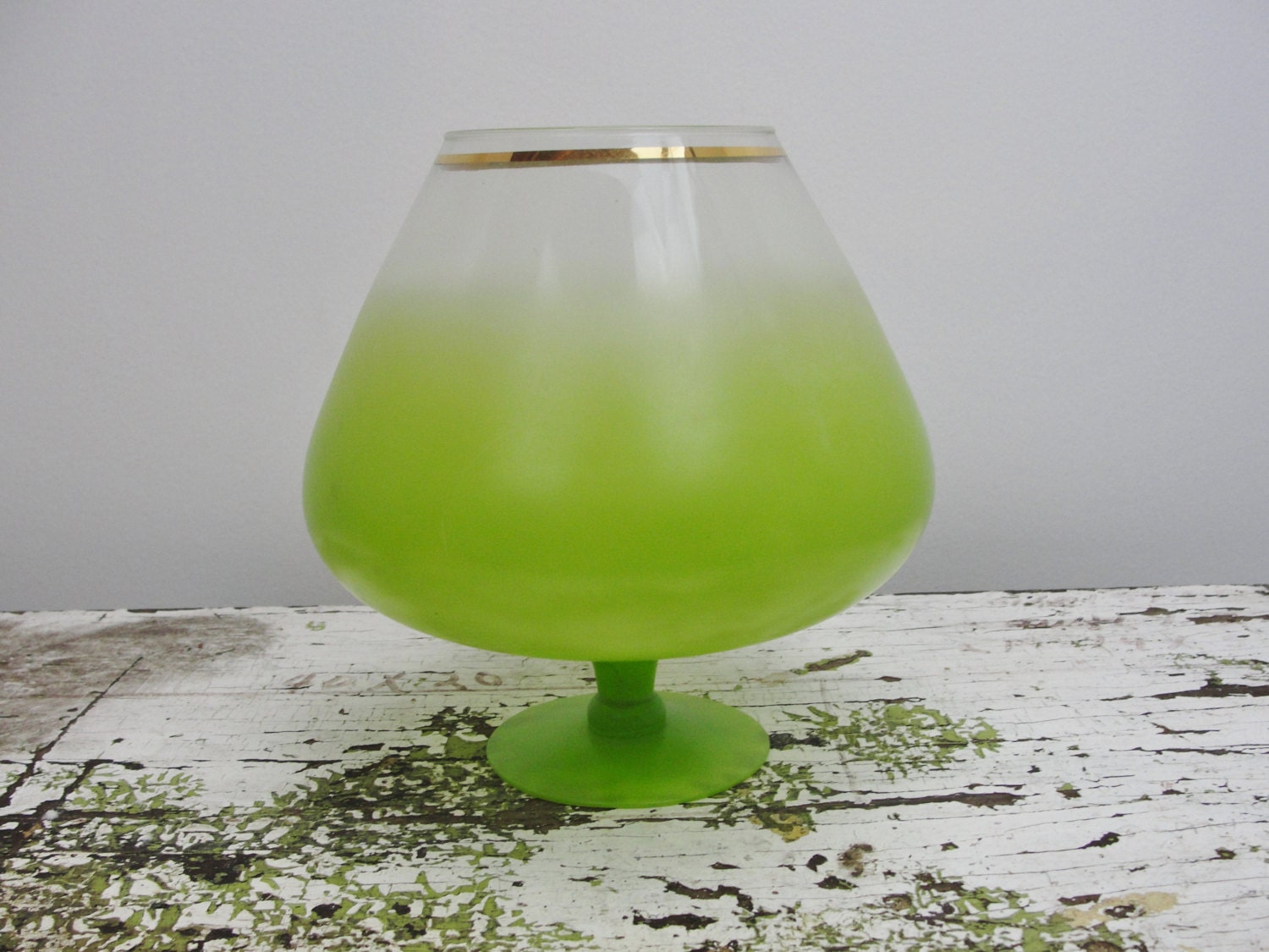 Vintage large lime green brandy snifter Blendo gold trim