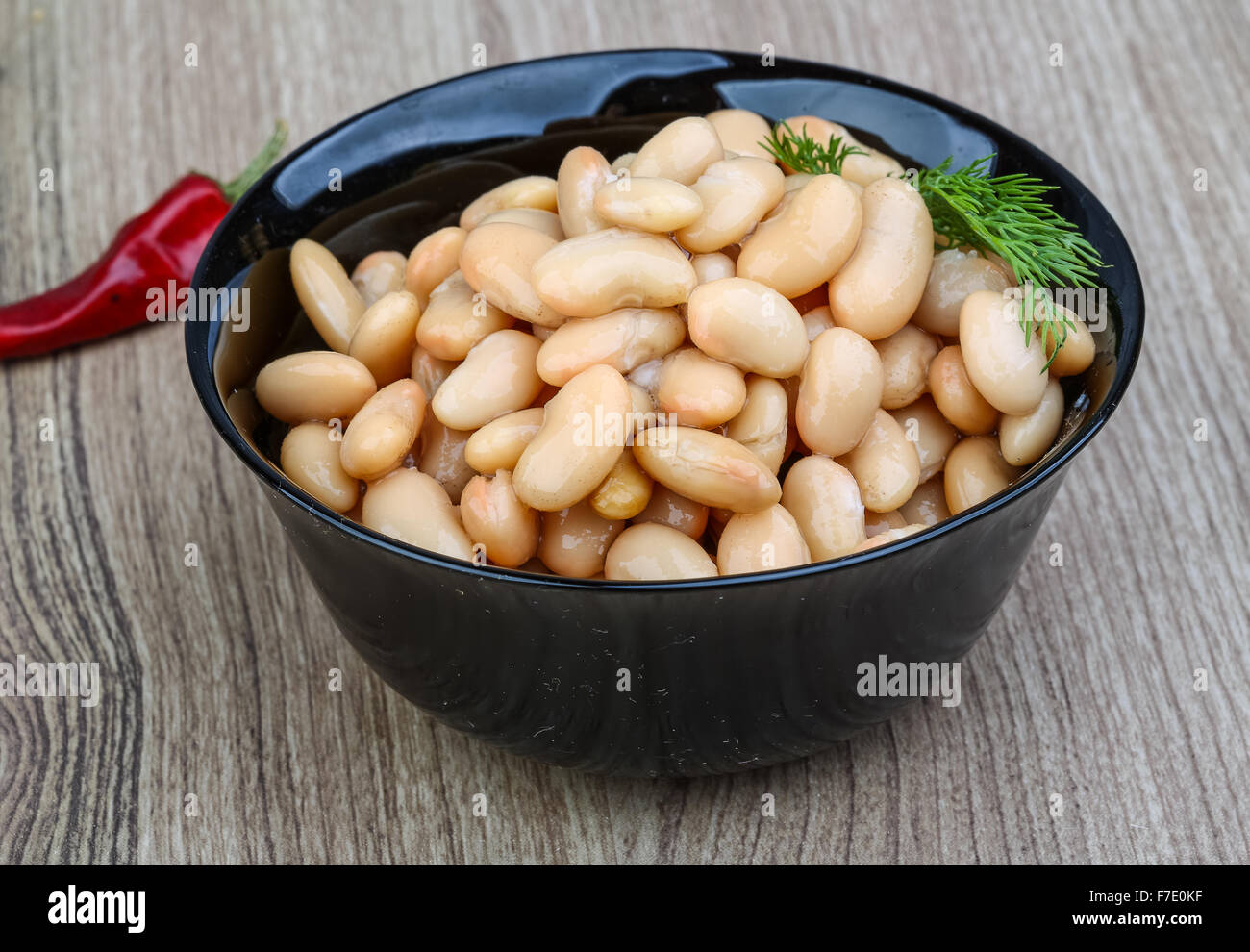 Canned white beans with green fresh dill leaf Stock Photo Alamy