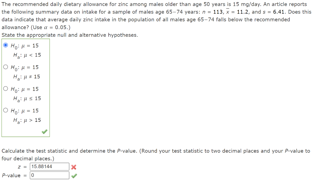 Solved The daily dietary allowance for zinc