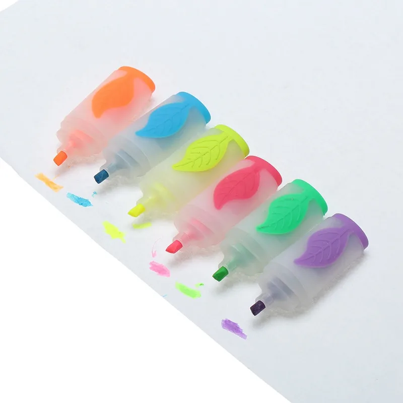 Kicute 6Pcs/lot Mini Highlighters Marker Pens Cute Colored Leaf