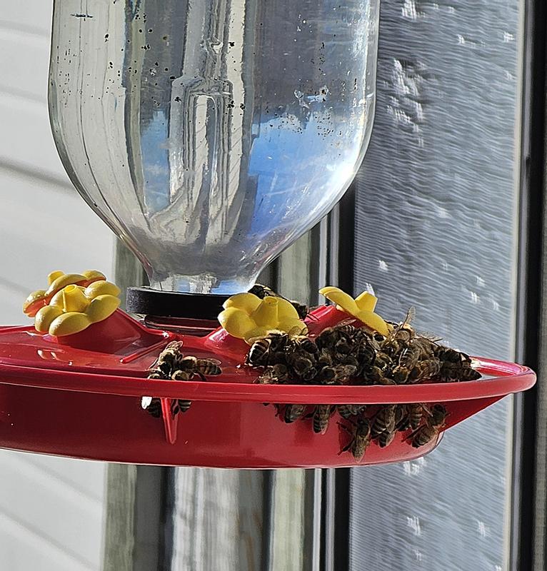 If you want a more decorative way to block the bees and wasps from getting into the hummingbird feeder, use nectar guard tips. Keep bees and wasps away with saucer feeders. These are plain versions of bee guards for hummingbird feeders without a fancy flower design. By installing these homemade bee guards on your hummingbird feeder, you can create a safe and inviting space for hummingbirds to feed. Add decoy feeders to distract bees and wasps. Learn effective ways to repel bees from hummingbird feeders. Place fake wasp nests nearby. Slip nectar guard tips over hummingbird feeder holes. Using moats is an effective method to keep bees and wasps away.