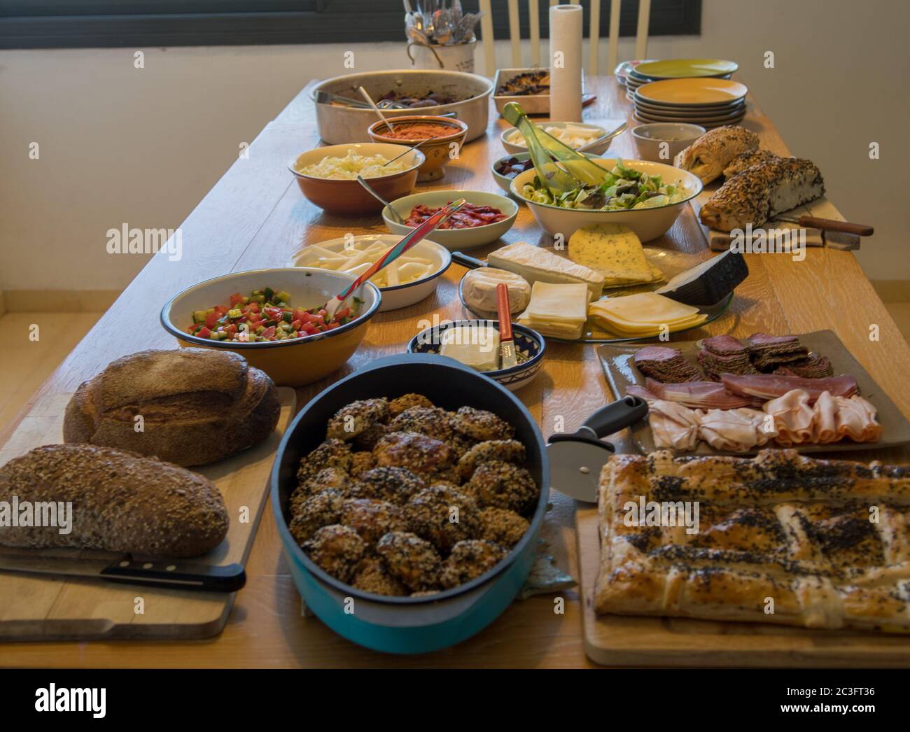 A colourful Israeli breakfast Stock Photo Alamy What Is A Typical Israeli Breakfast This breakfast style originated on. What is a typical israeli breakfast? The meal is also an opportunity to fuel up for the day ahead, making it an essential part of israeli culture. While it’s true that there are varieties to this meal, each typical israeli breakfast has the same core elements. Many of the dishes are savory. Israeli breakfast consists. What Is A Typical Israeli Breakfast.