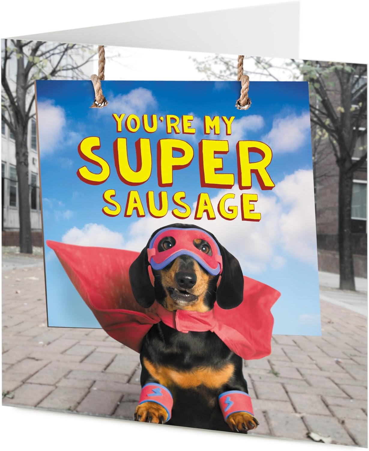 You're My Super Sausage Funny Black and tan Sausage Dog Dachshund Superhero Greeting Card