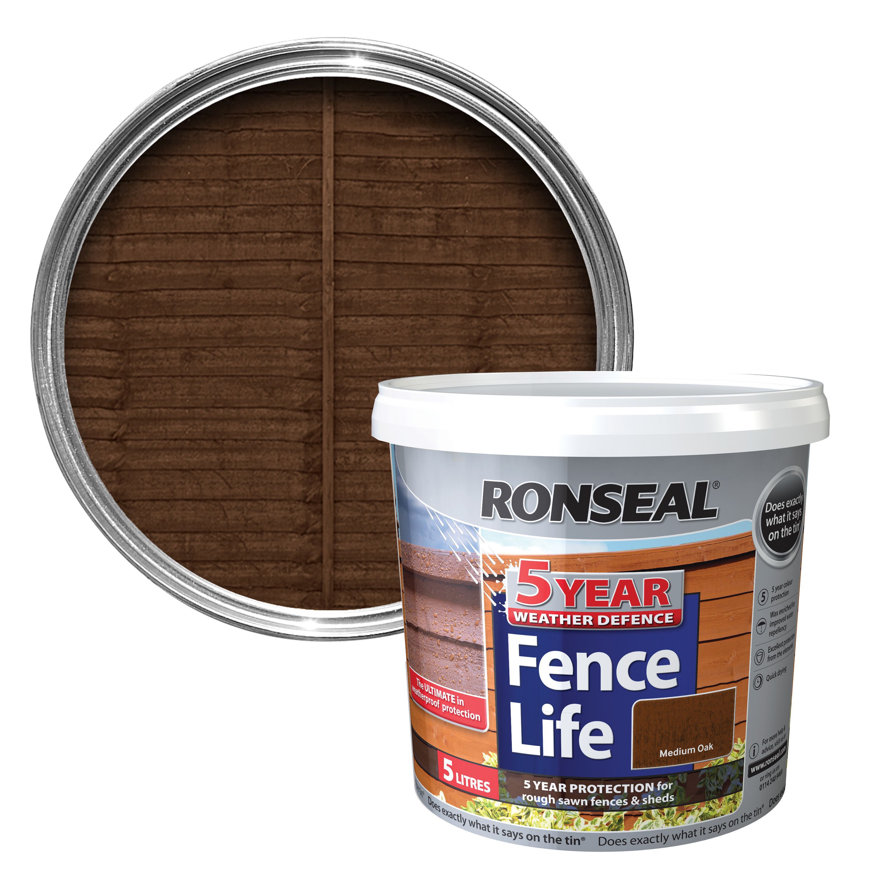 Ronseal Medium Oak Matt Shed & Fence Stain 5L Departments DIY at B&Q