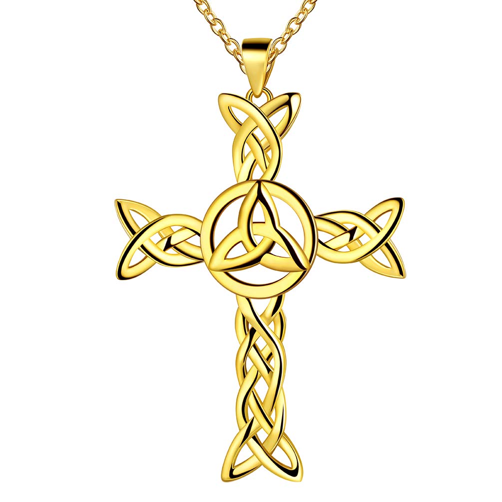 925 Sterling Silver 18K Gold Plated Cross Pendant Celtic Knot Necklace