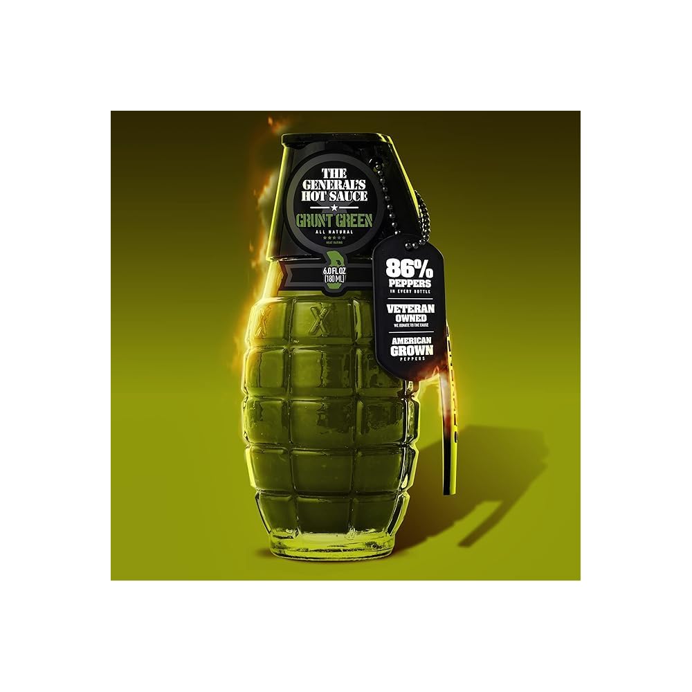 The General's Hot Sauce Grunt Green Hooah jalapeno, grunt green, maple mayhem, dead red, danger close, and shock & awe. It still carries that same rich. The general's hot sauce grunt green is a unique, tangy, and earthy sauce made from green cayenne peppers picked just before they turn red. The general’s grunt green hot sauce. The general’s hot sauce is a product of smoke hall foods and comes in six signature flavors: A tangy mild green cayenne hot sauce. Grunt green was discovered almost by accident that green cayenne. We discovered almost by accident that green cayenne peppers picked just before they turn red can bring a truly unique, tangy, earthy flavor. 3 bottles of grunt green. Grunt green was discovered almost by accident that green cayenne peppers. Much of the harvesting of the green peppers happens at the end of a growing season, when these mature, perfectly balanced peppers just. The super 6 — launched by popular demand—contains one bottle each of our six original flavors: Hooah jalapeno, grunt green, maple mayhem, dead red, danger close, and shock & awe.
