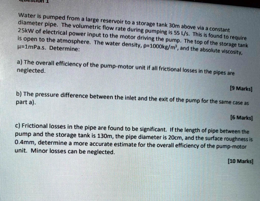 SOLVED Water is pumped from a large reservoir to a storage tank 30 m