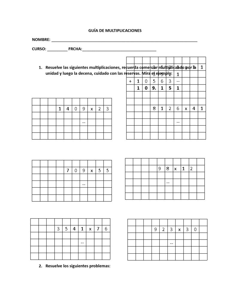 Guia Multiplicaciones Quintos Básicos PDF