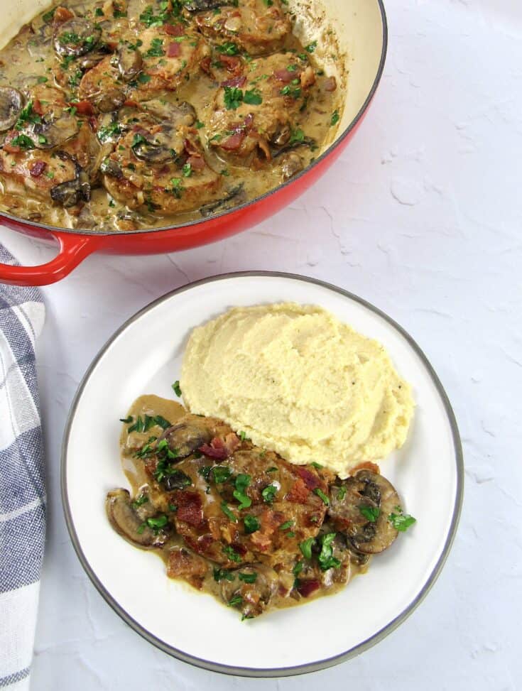 Keto Pork Chops with Bacon Mushroom Gravy Keto Cooking Christian Pork Chops Mushroom Gravy Keto Remove the pork chops to a plate. Serve keto pork chops in mushroom gravy with keto cauliflower gnocchi or keto. Sprinkle with thyme and rosemary if using. On medium/high heat, cook pork chops in a cast iron skillet for about 4 minutes on each side in olive oil, until you have a golden sear. Instant pot pork chops smothered in. Pork Chops Mushroom Gravy Keto.