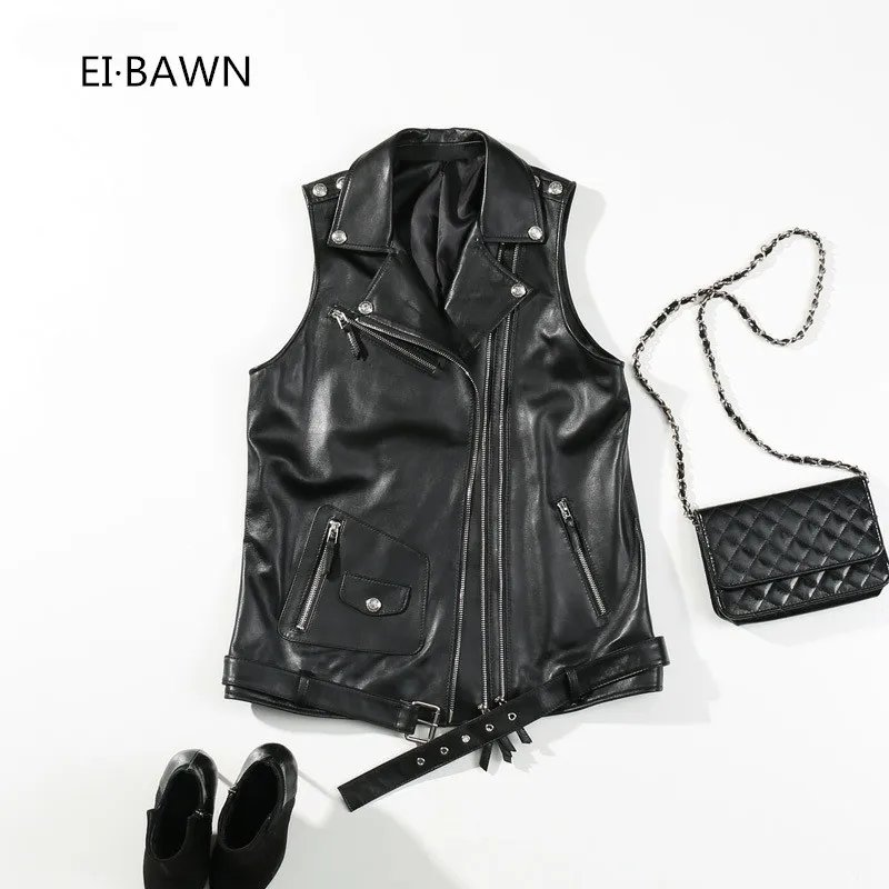 2018 New Arrival Vest Women Genuine Leather Black Faux Zipper