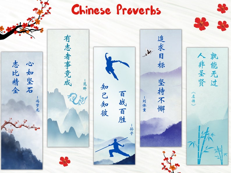 Chinese Printable Bookmarks for Students 10 Chinese Proverbs 10