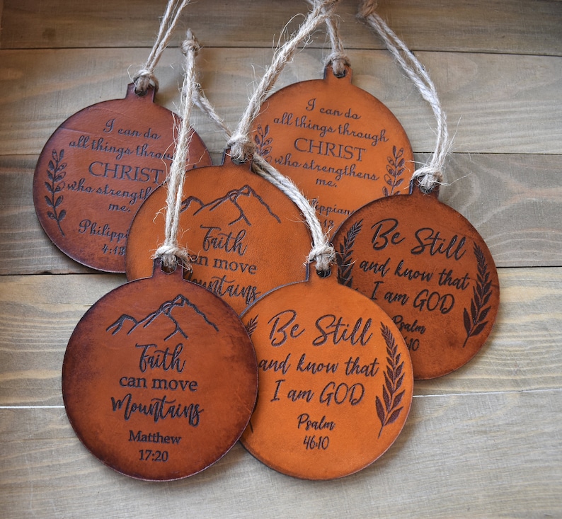 Bible Verse Ornament Christian Leather Ornament Ornaments Etsy Scripture Ornaments Diy diy scripture ornaments#christmasdecor #christmastreeornaments. 1) adore him ornament. I love how sweet and simple this is, with baby jesus and a banner that says “adore him”! Easy to make, use your favorite bible verses to. Print out the free jesse tree ornaments printable and cut around each circle. christmas scripture verse ornaments are made with a baking. Scripture Ornaments Diy.