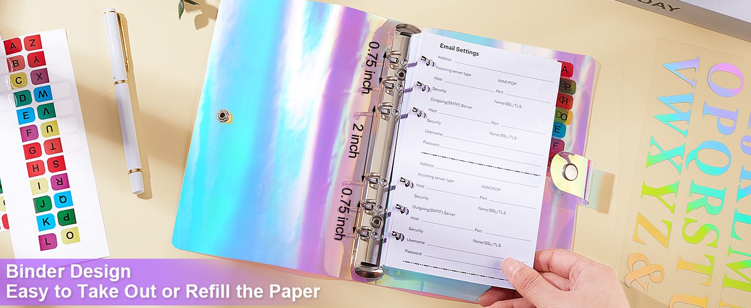 Password Address Book with Alphabetical Tabs, Refillable Binder Address Book