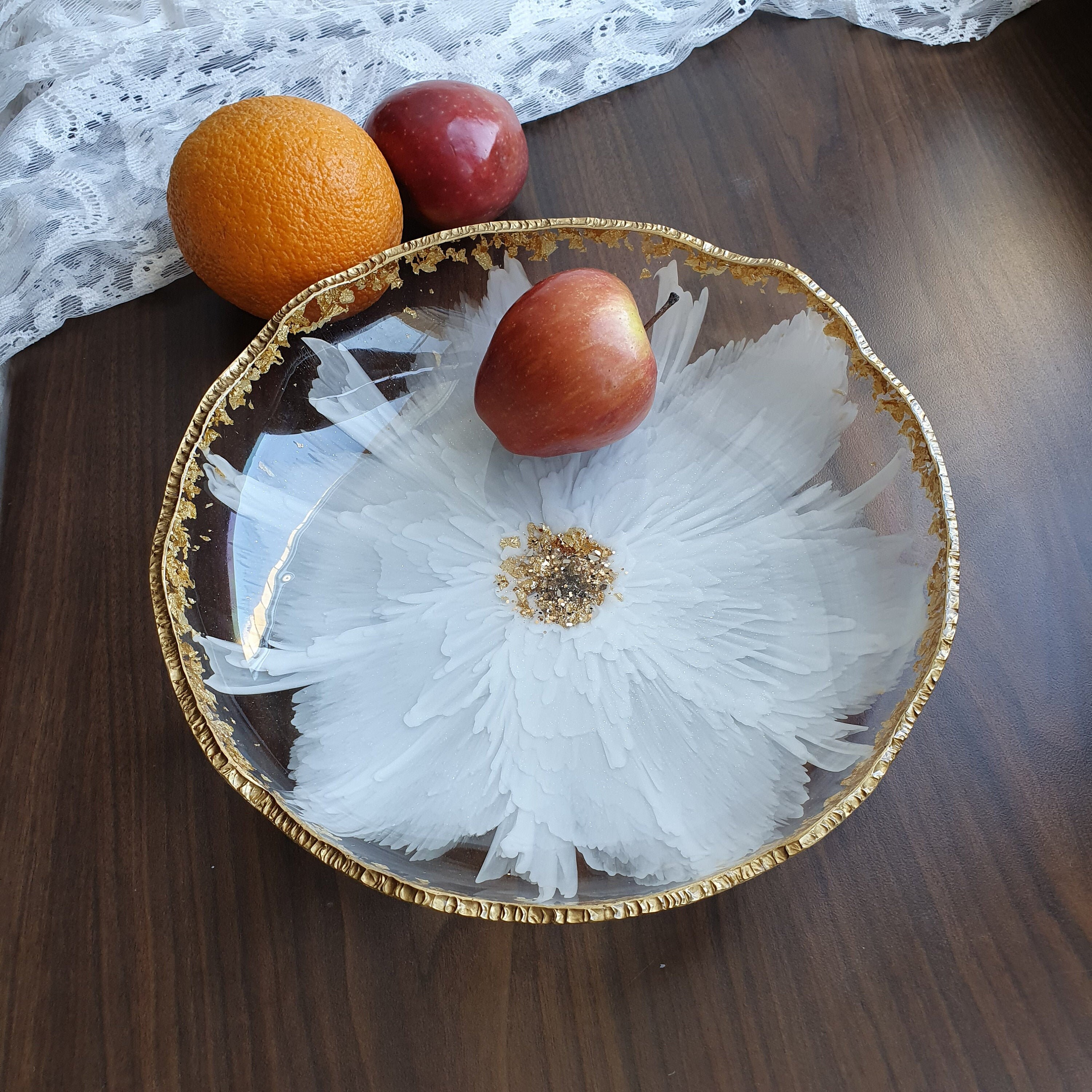 White flower fruit bowl resin decorative bowl serving bowl Etsy White Decorative Fruit Bowl Just the right size for a modern white decorative bowl for the kitchen counter or a rustic farmhouse fruit bowl for your dining. Ceramic fruit bowl with draining holes, 10 large fruit basket with multifunctional removable pedestal, decorative fruit bowl for table. Check out our white ceramic fruit bowl selection for the very best in unique or custom, handmade pieces. White Decorative Fruit Bowl.