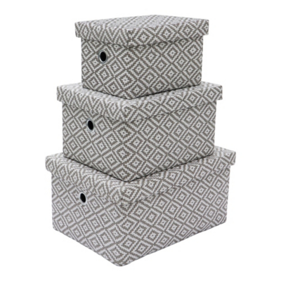JVL Argyle Set of 3 Rectangular Fabric Storage Boxes with Lids Home