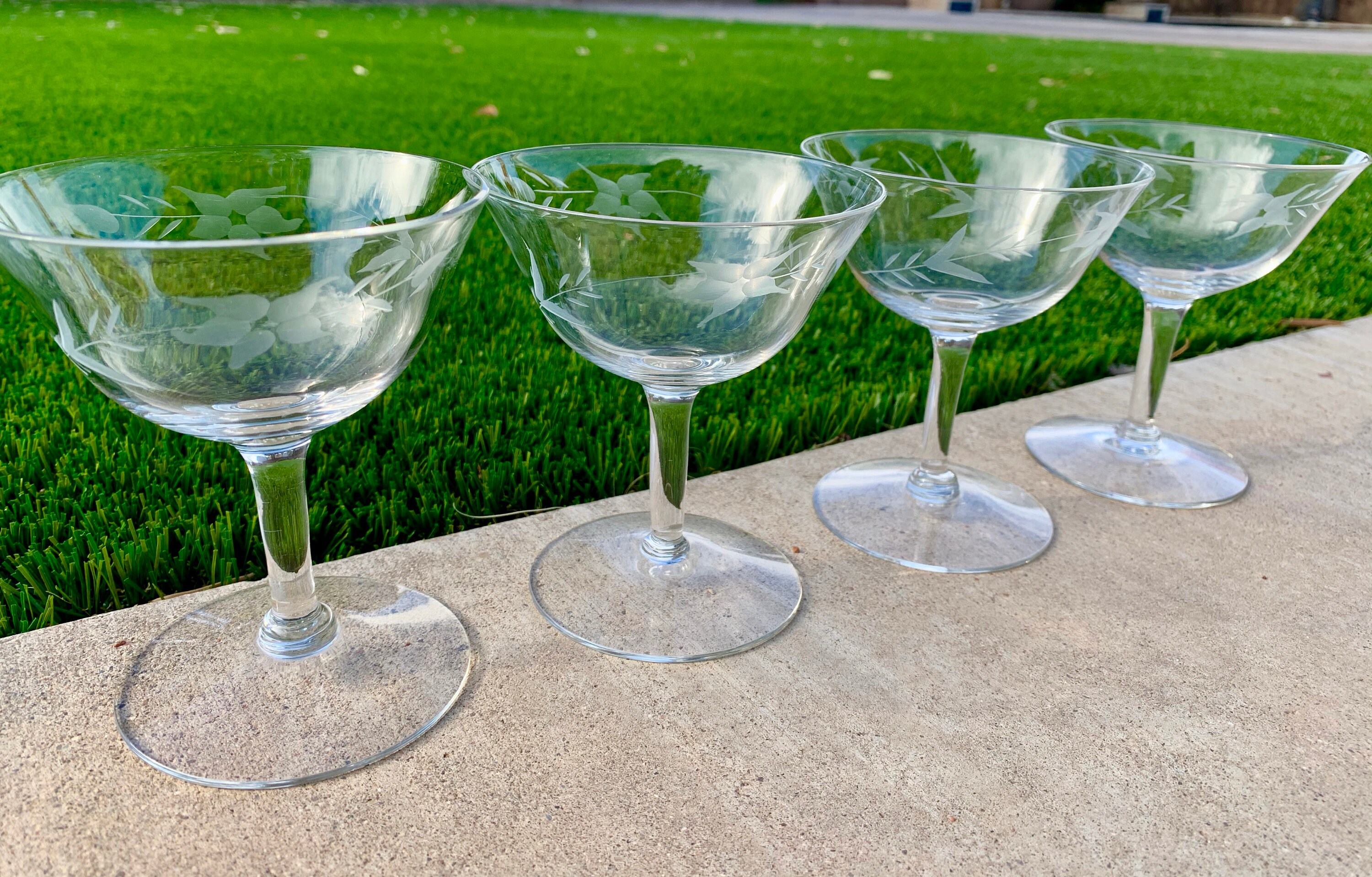 Set of FOUR Flower Etched Champagne Cocktail Glasses Mid Etsy