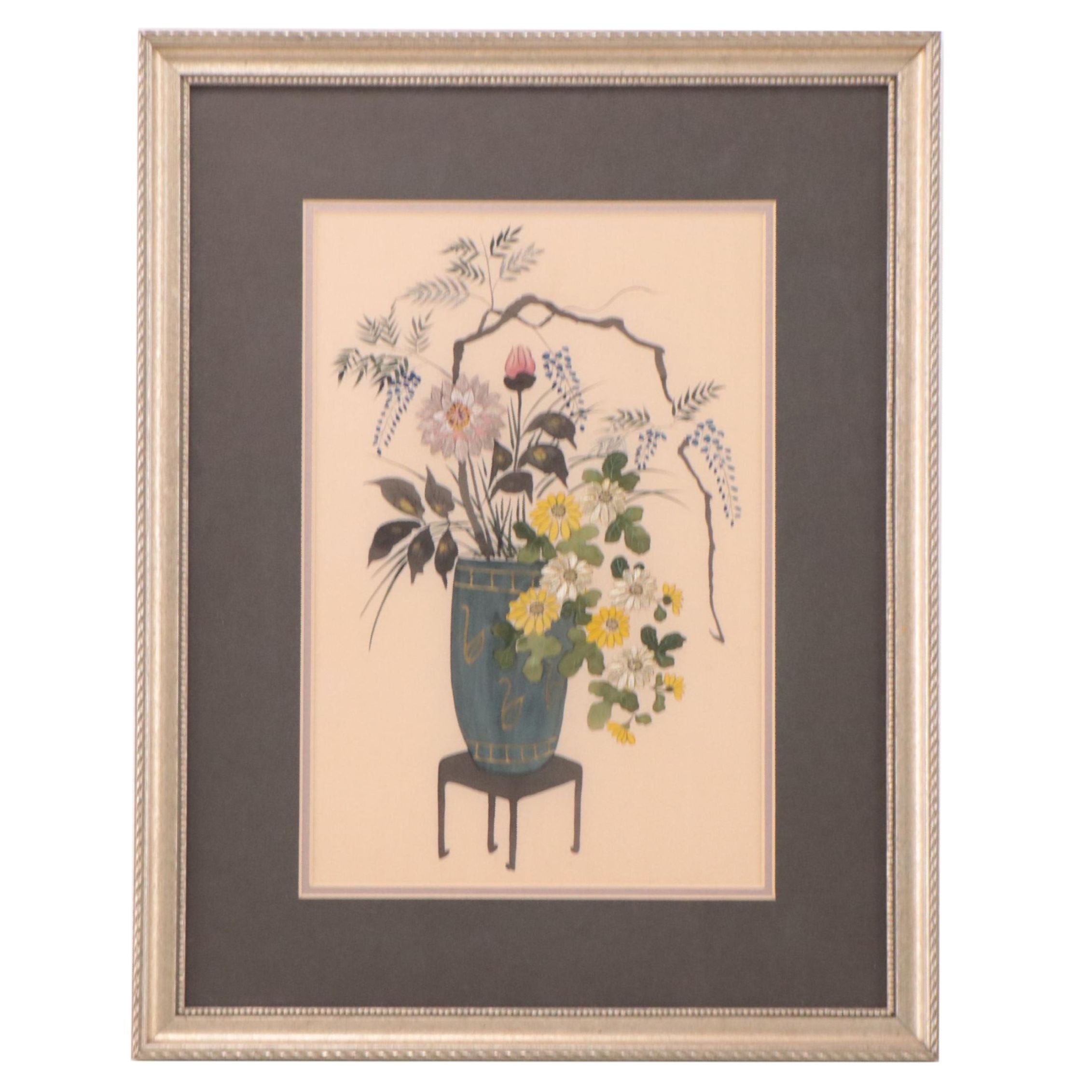 Japanese Mixed Media Painting of Floral Still Life, Circa 1965 EBTH