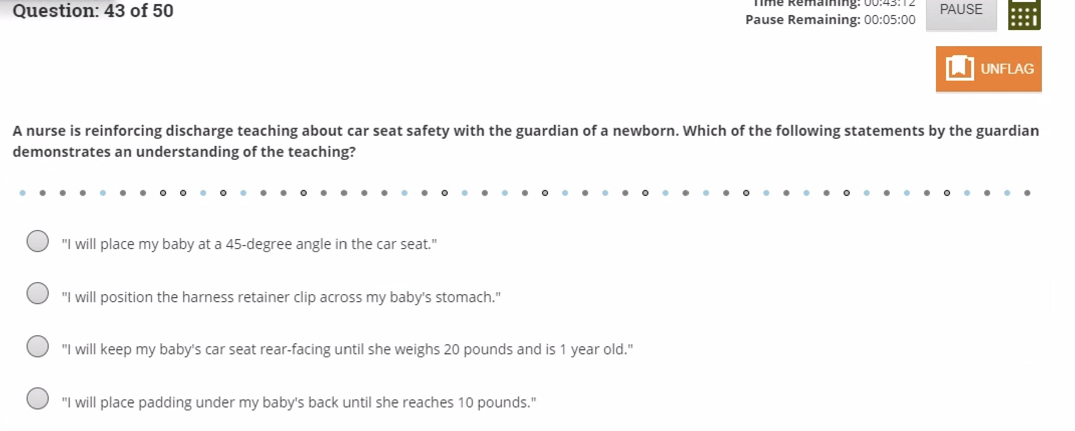 Solved Question 43 of 50 Pause Remaining 000500 PAUSE A Car Seat Discharge Teaching What are two (2) discharge teaching points the nurse should include in the parent's discharge plan on car seat safety? Learn how to test infants for safety to travel in a car seat or car bed before discharge from the hospital. When discharge is anticipated, the infant’s nurse will notify the family of the need to bring in the car. Car Seat Discharge Teaching.